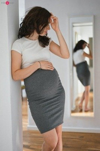 Spódnica ciążowa Tummy z dzianiny w prążki Milk&Love ciemny melanż