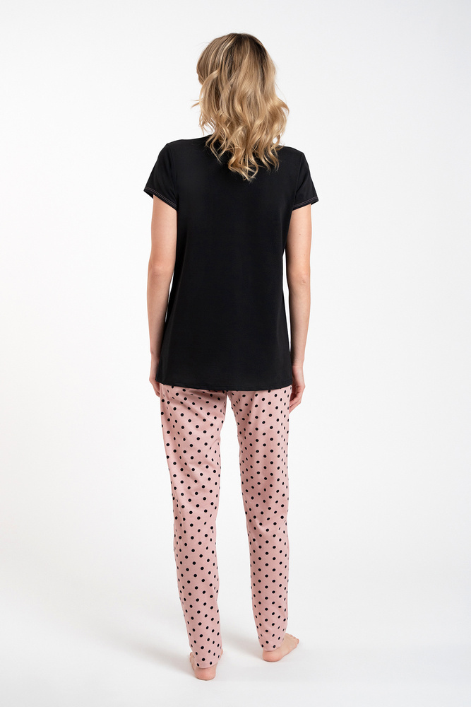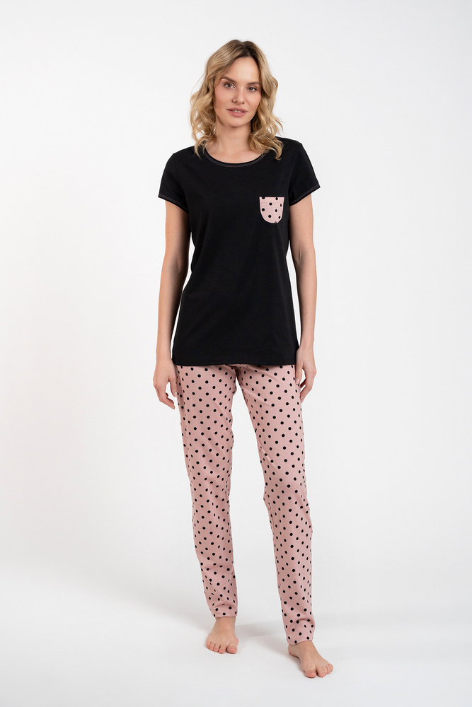 Buscato Piżama Damska krótki rękaw, długie spodnie Italian Fashion czarny/druk