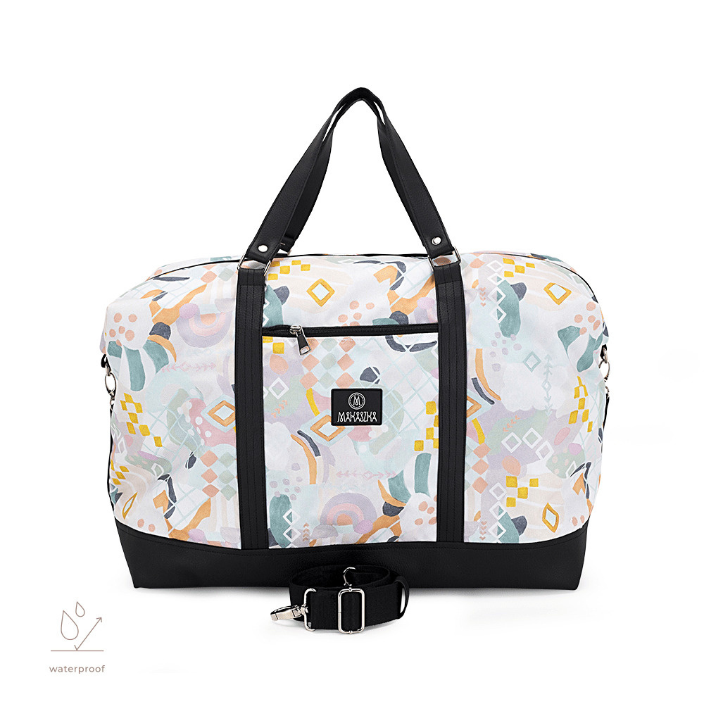 Torba weekendowa stworzona z myślą o wszelkich wyjazdach. Zamykana na zamek, wewnątrz obszerna kieszeń zamykana na suwak i komplet mniejszych kieszonek. Po zewnętrznej stronie podręczna kieszonka zapinana na suwak, oraz szeroka szlufka z kieszonką umożliwiająca zamontowanie torby na walizce. Po bokach torby znajdują się karabińczyki zmniejszające jej rozmiar. Torba posiada regulowany pasek na ramię o długości 80-100cm, wygodne rączki z ekoskóry o długości 50cm, ma wzmocnione i usztywnione dno z ekoskóry, oraz metalowe nóżki do dodatkowej ochrony.