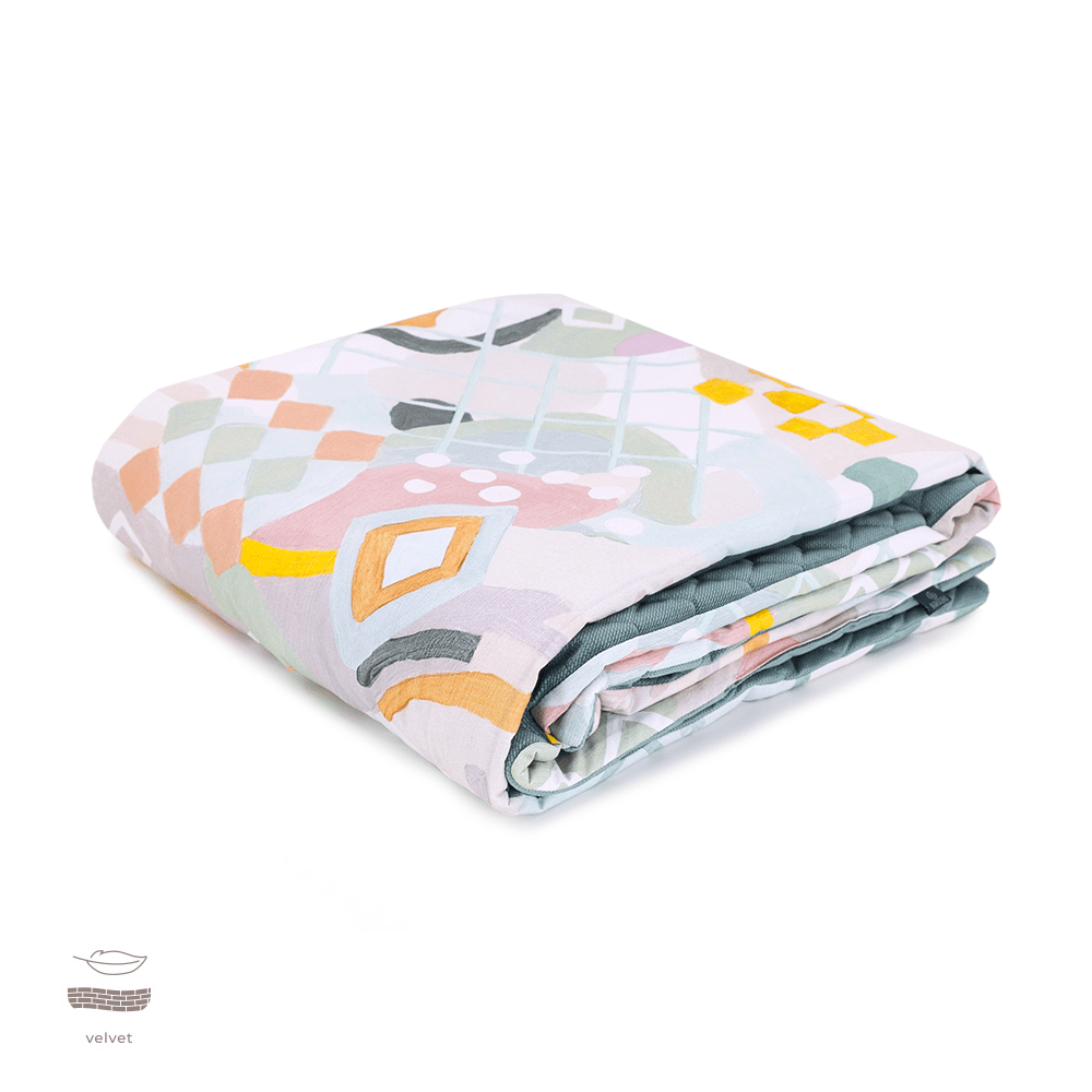 Jedna strona kocyka wykonana jest z najwyższej jakości bawełny, która nie spiera się, "nie mechaci" i nie traci swoich właściwości nawet po wielokrotnym praniu, druga strona to bajecznie mięciutki Velvet elegancko przepikowany w niepowtarzalny wzór. W środku wypełniony antyalergiczną, lekką, silikonową włókniną zapewniającą ciepło maluszkowi.