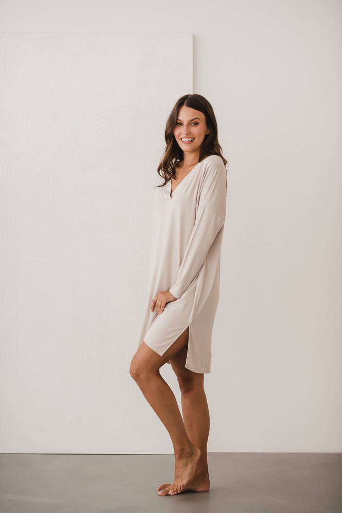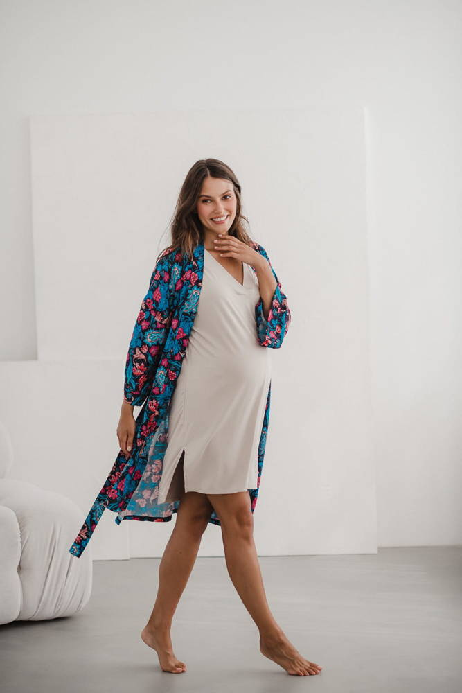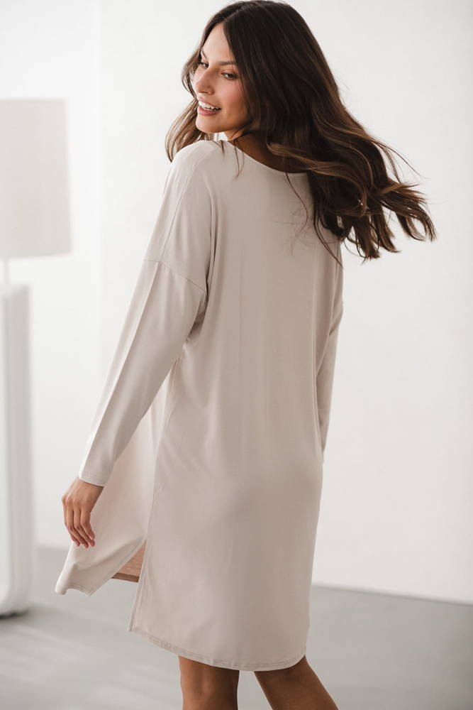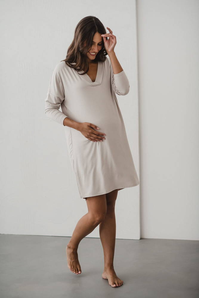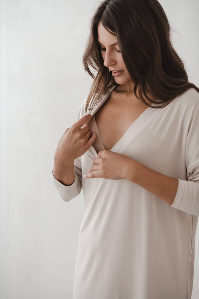 Moon bambusowa koszula nocna ciążowa i do karmienia długi rękaw Milk&Love jasny beż