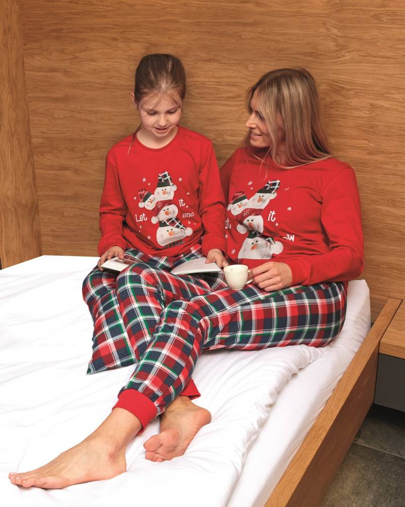 Piżama damska wykonana z wysokiej jakości bawełny. Koszulka z długim rękawem. Mankiety, dół koszulki i nogawki zakończone ściągaczem. Do kompletu polecamy piżamy dla całej rodziny z kolekcji Snowman. Pakowana w pudełko.