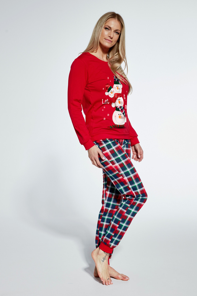 671/348 Snowman Piżama damska świąteczna Cornette czerwony
