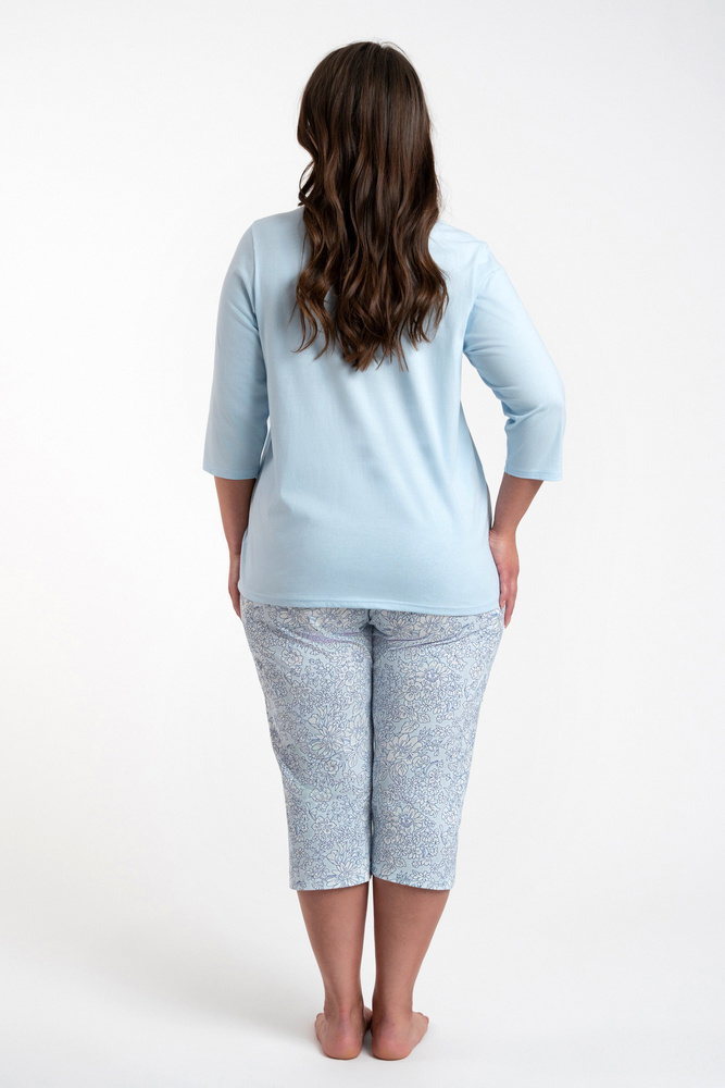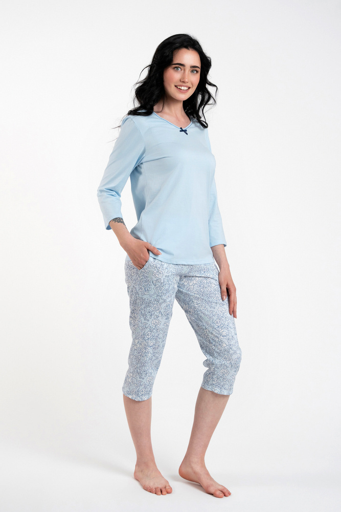 Salli Piżama Damska 3/4 rękaw i 3/4 spodnie Italian Fashion -niebieski/druk