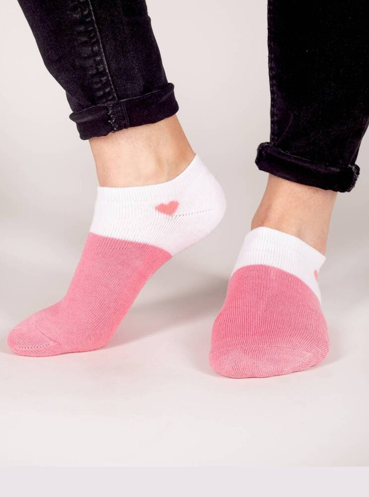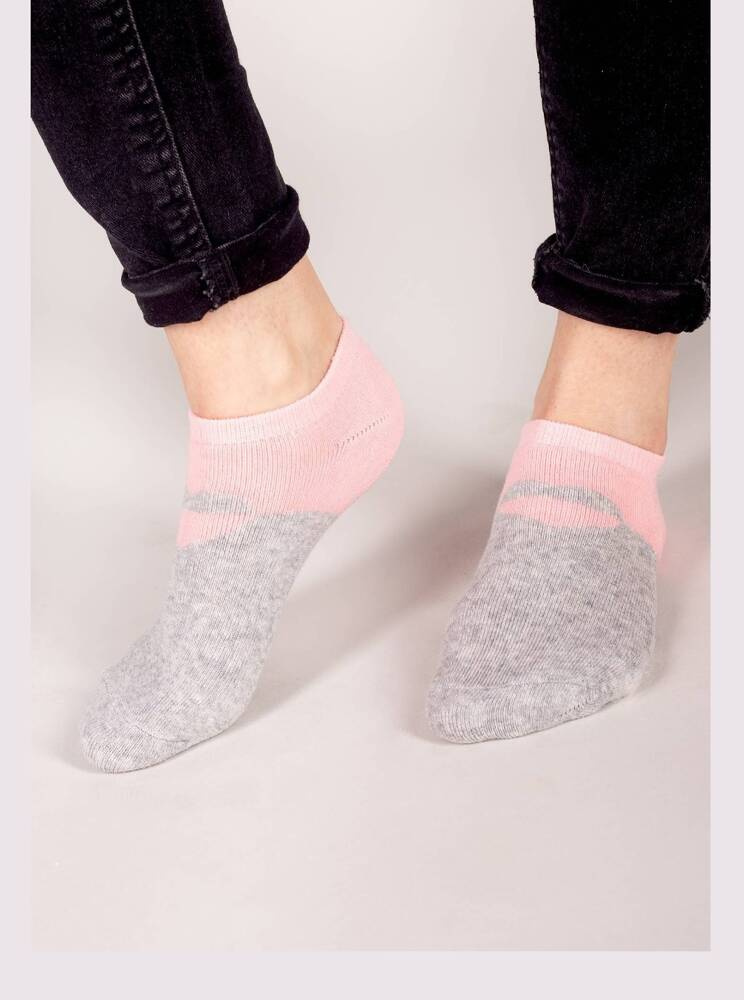 Bawełniane stopki damskie/młodzieżowe z dodatkiem włókien elastycznych. Ozdobione kolorowym wzorem.