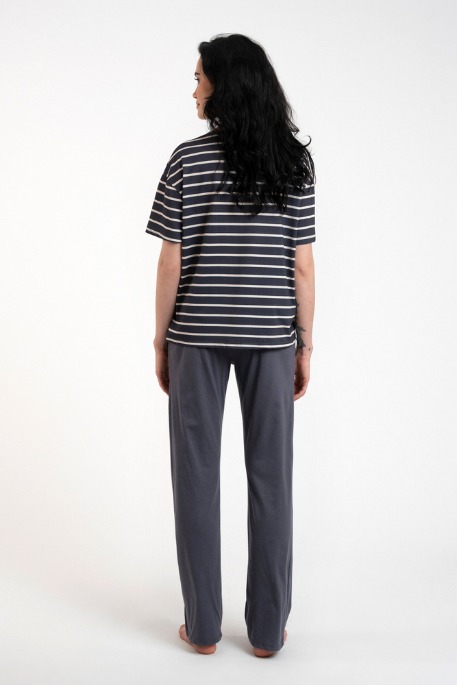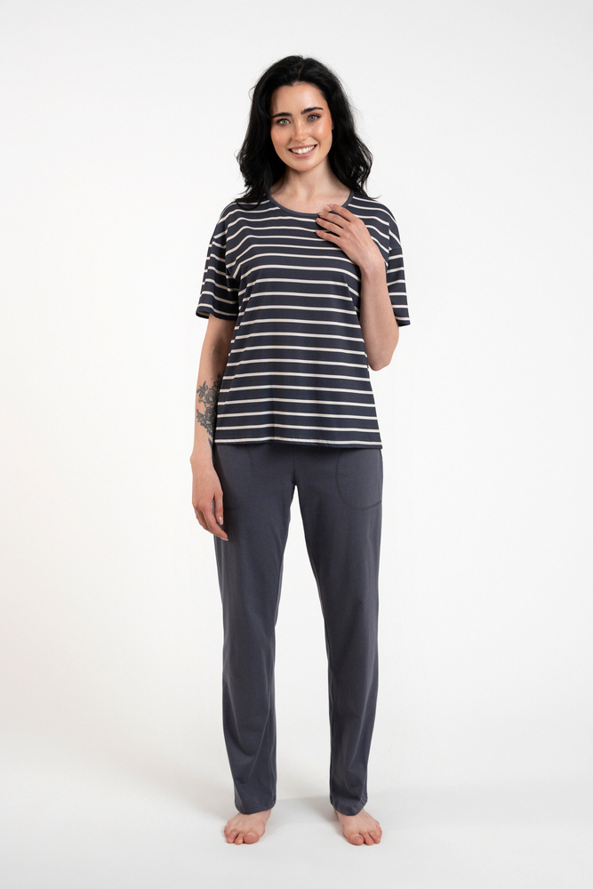 Betty Piżama Damska krótki rękaw, długie spodnie Italian Fashion - druk grafitowy/grafitowy