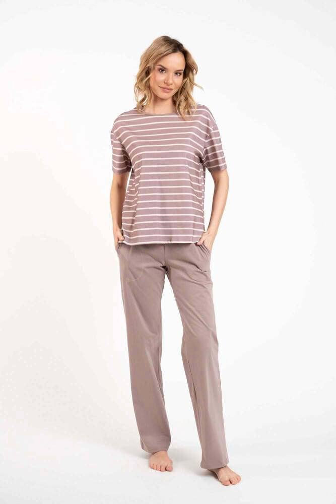 Betty Piżama Damska krótki rękaw, długie spodnie Italian Fashion - cappuccino/druk cappuccino
