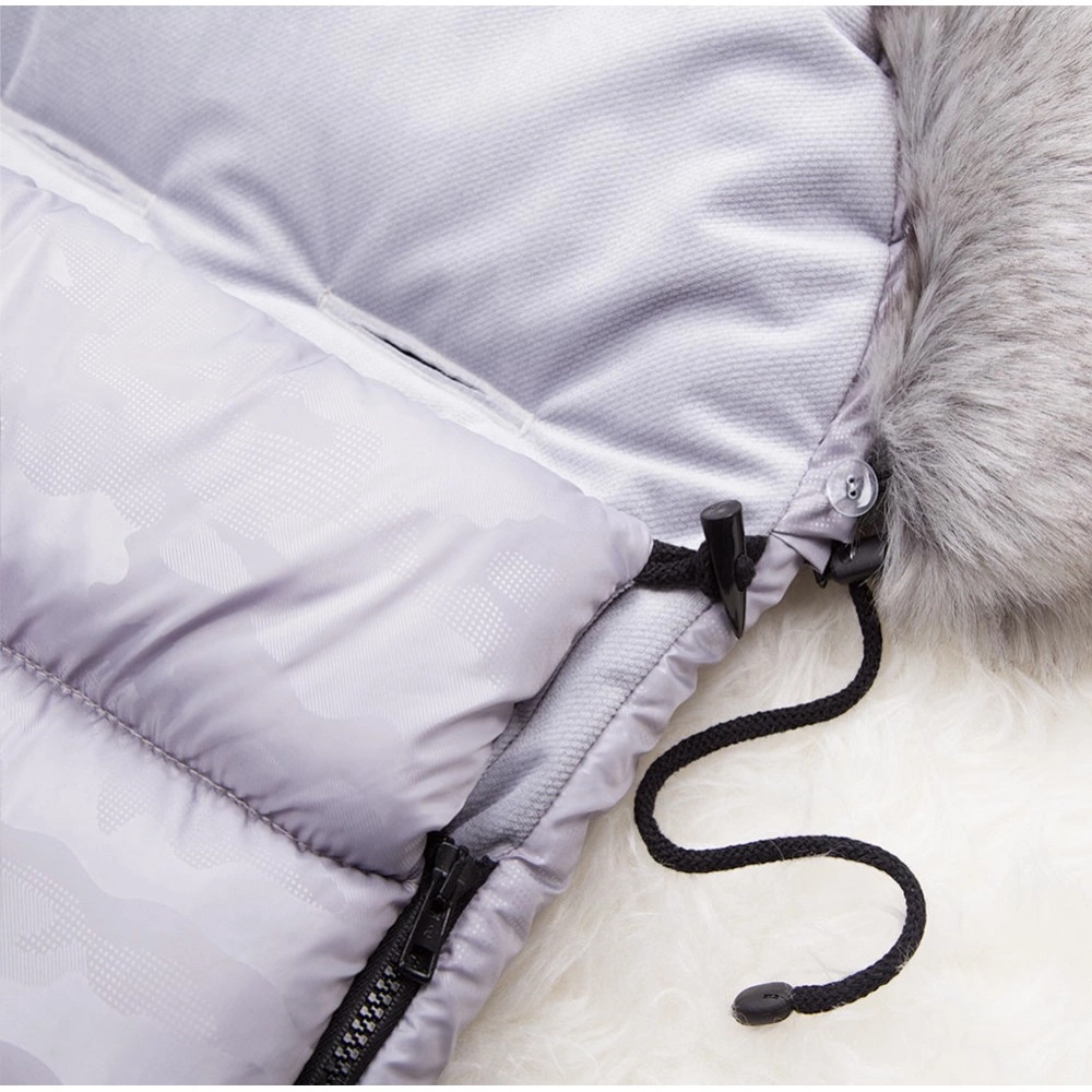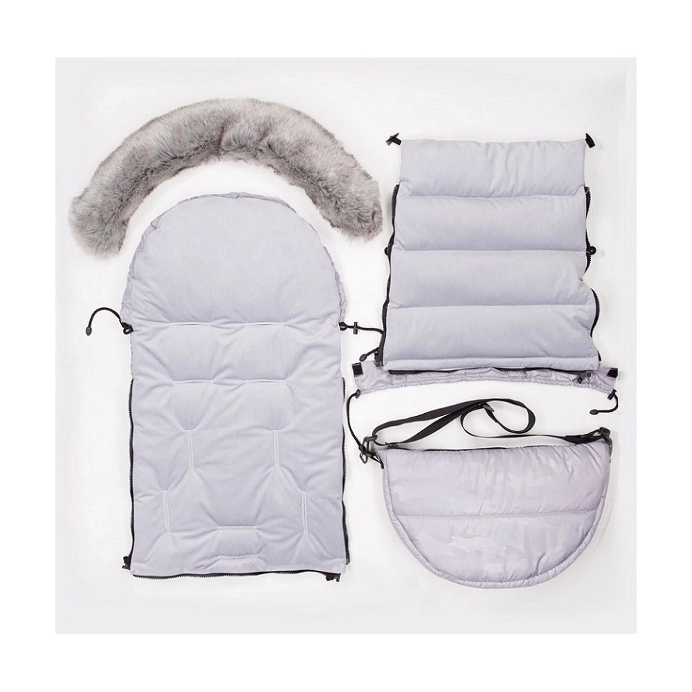Uszyty z miękkiej i przyjemnej w dotyku tkaniny odzieżowej stanowiącej doskonałą ochronę dziecka przed chłodem, deszczem oraz wiatrem. Posiada dodatkową warstwę ocieplacza. Wewnątrz wyłożony jest mięciutkim materiałem typu velvet. W kapturze śpiworek posiada odpinane na guziczki eko-futerko. Na przodzie znajduje się naszywka wykonana z eko-skórki.