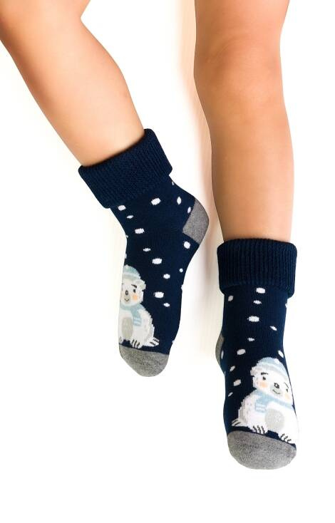 Art.154 Skarpety dziecięce świąteczne frotte Steven 046 granatowy
