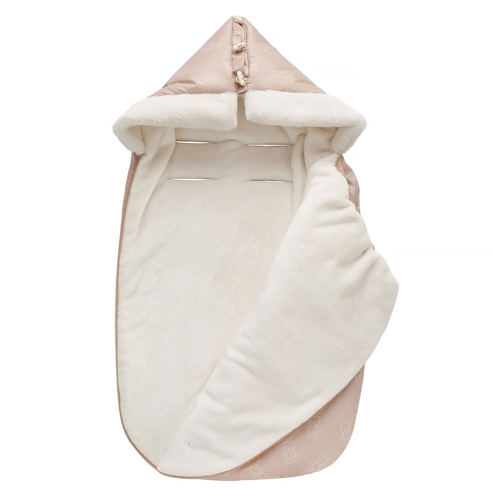 Dla wygody i bezpieczeństwa dziecka, śpiworek ma na plecach specjalne otwory na 3 punktowe pasy bezpieczeństwa, przez które można przełożyć pasy od fotelika samochodowego 0-13 kg.