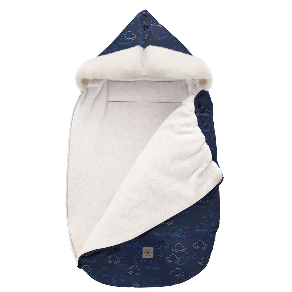 Dla wygody i bezpieczeństwa dziecka, śpiworek ma na plecach specjalne otwory na 3 punktowe pasy bezpieczeństwa, przez które można przełożyć pasy od fotelika samochodowego 0-13 kg.
