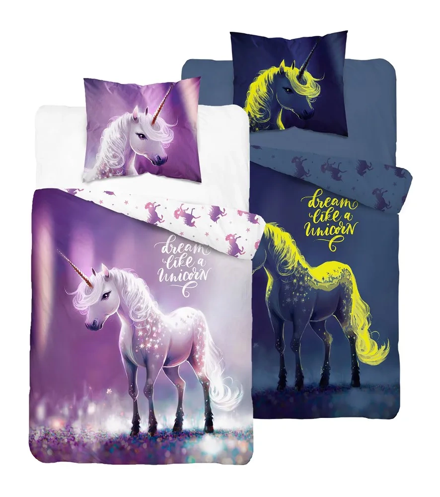 4638 A Fluo 35 Pościel bawełniana świecąca w ciemności Jednorożec Detexpol