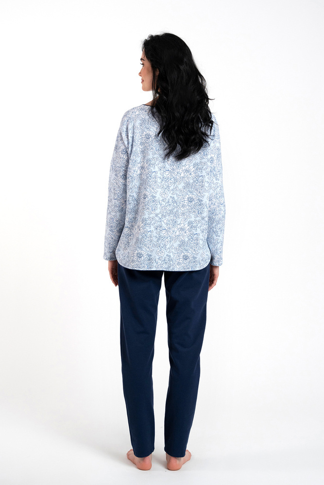 Gracjela Piżama Damska długi rękaw, długie spodnie Italian Fashion - druk niebieski/granatowy