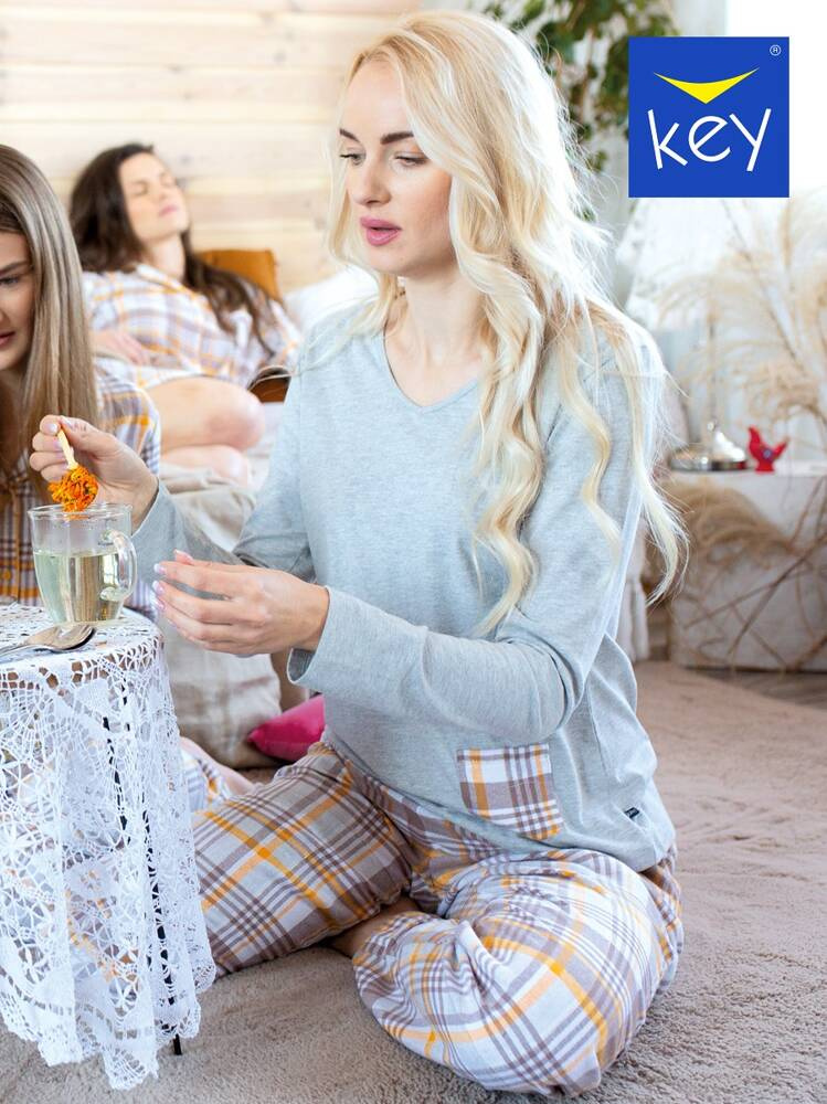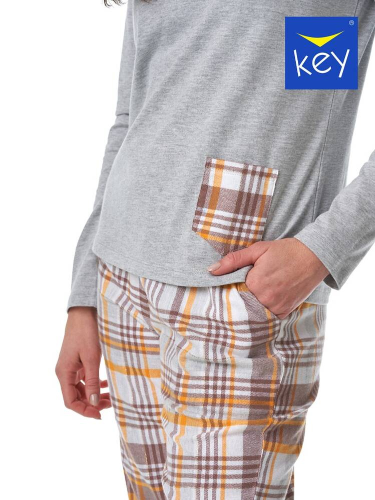 LNS 458 Flanela Bawełniana Piżama Damska Key - szary melanż