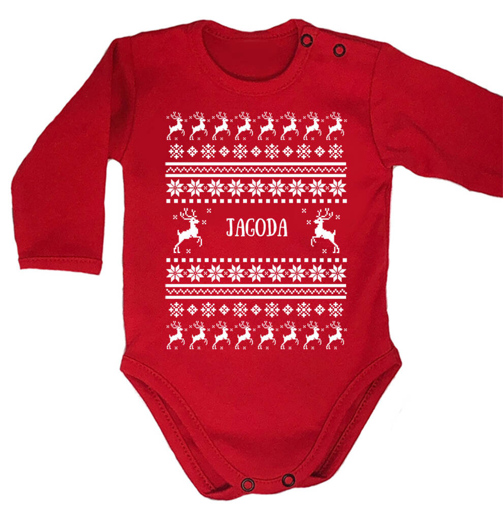 "ŚWIĄTECZNY SWETEREK z imieniem" Body długi rękaw Moocha czerwony