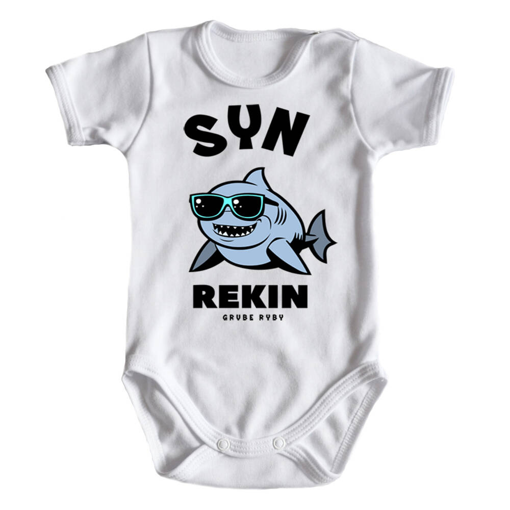 "REKINY grube ryby" Moocha body krótki rękaw biały
