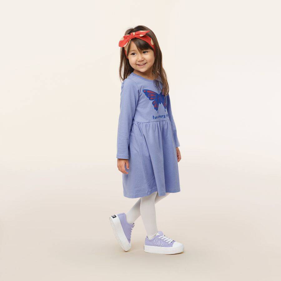 Luźny i wygodny fason sukienki przypadnie do gustu każdej małej elegantce.