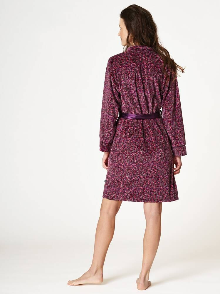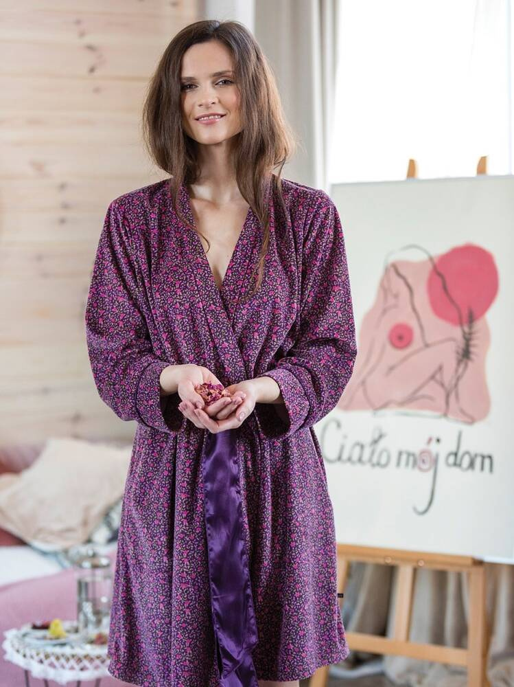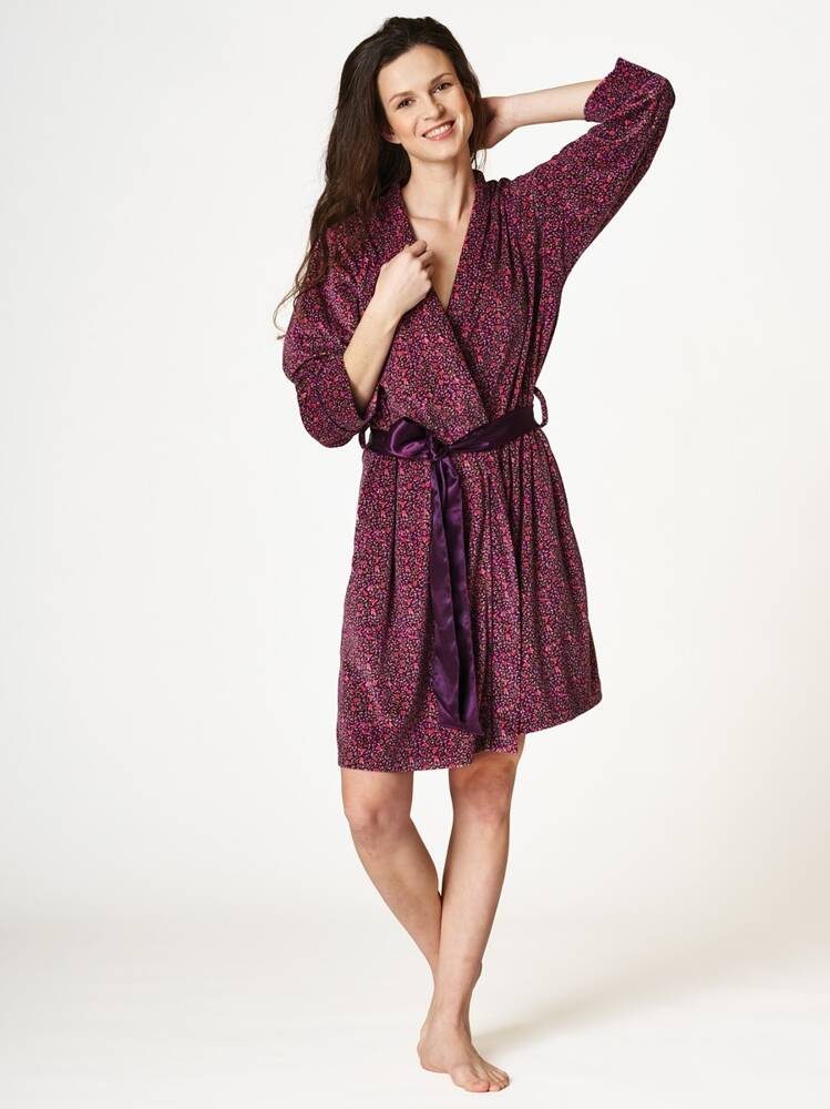 Krótki szlafrok damski w kolorowy, roślinny print.