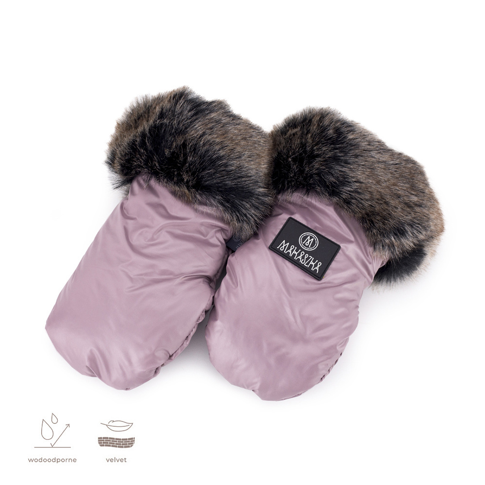 Cieplutkie i wodoodporne Rękawice Velvet zapinane na dyskretny magnes do drążka wózka.