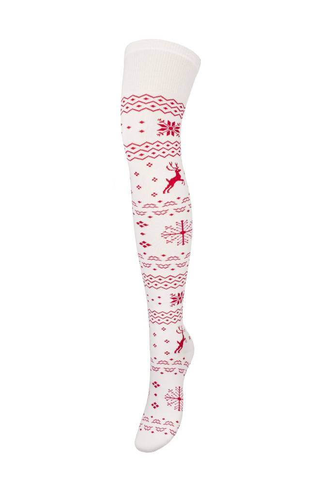 1276 Zakolanówki damskie świąteczne Milena - biały-czerwony