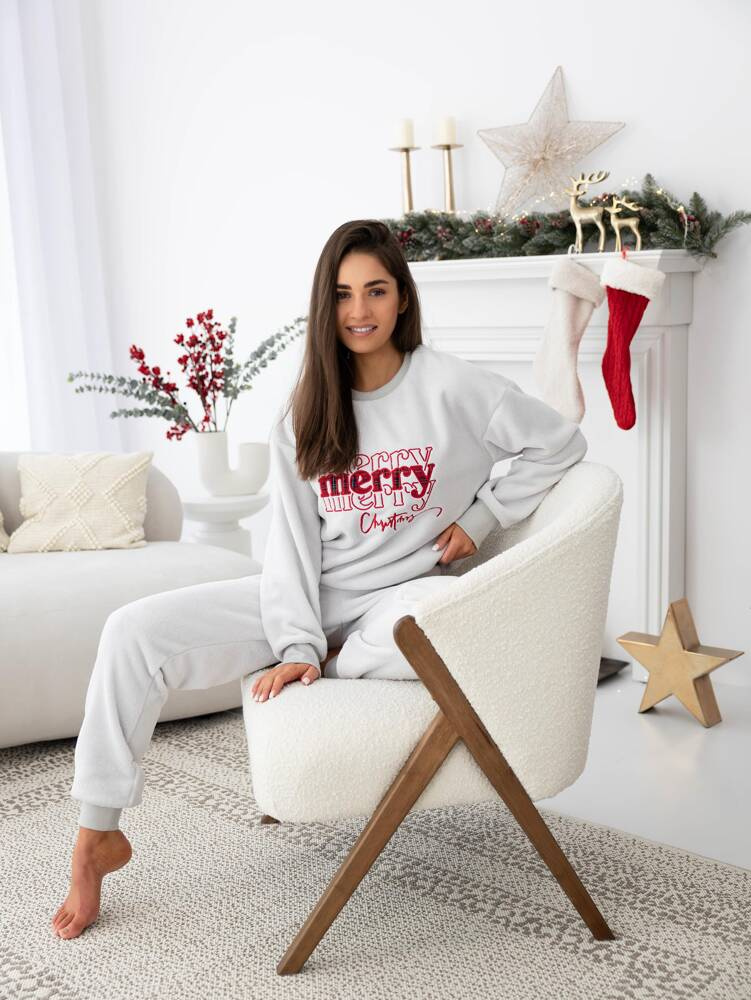 Koszulka z długim rękawem , przód z ozdobnym zimowym haftem Merry Christmas.