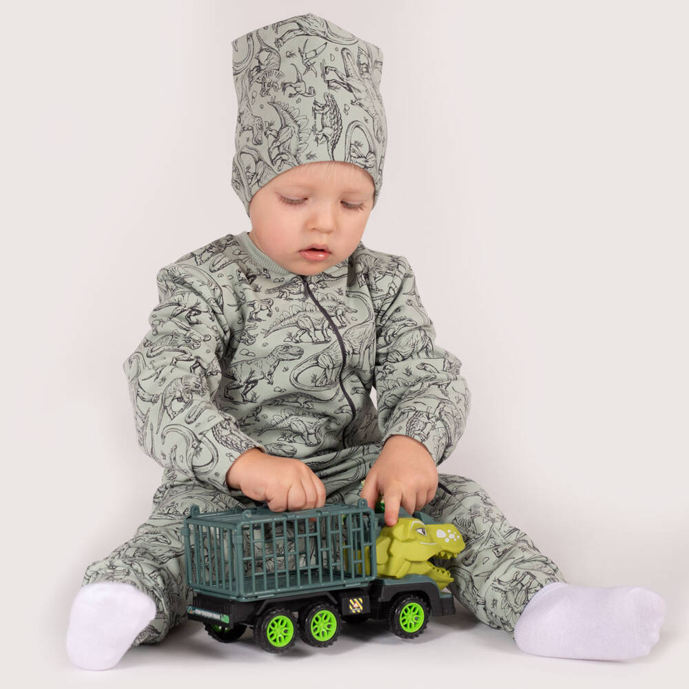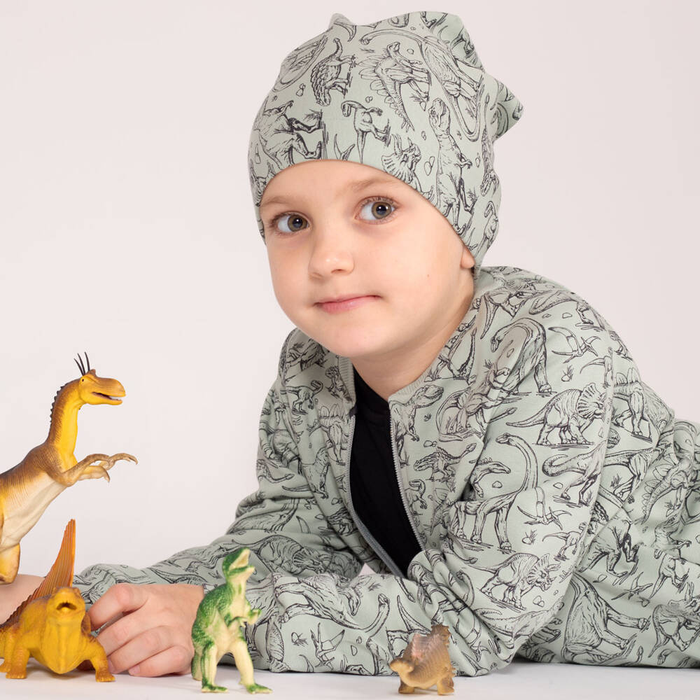 Czapka z kolekcji Tirex. Wykonana z miękkiej i przyjemnej bawełny, która doskonale rozciąga się i dostosowuje się do główki dziecka.