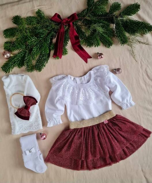 Delikatna i bardzo efektowna bluzeczka dla dziewczynki. Bluzeczka jest biała, całość zdobi piękna koronka w postaci kołnierzyka oraz bufiaste, długie rękawki, które są wykończone również koronką. Bluzka jest uszyta z przewiewnej i mięciutkiej dzianiny 100 % bawełna. Biała bluzka pasuje do każdej dziewczęcej stylizacji i nadaje jej odświętnego wyglądu.