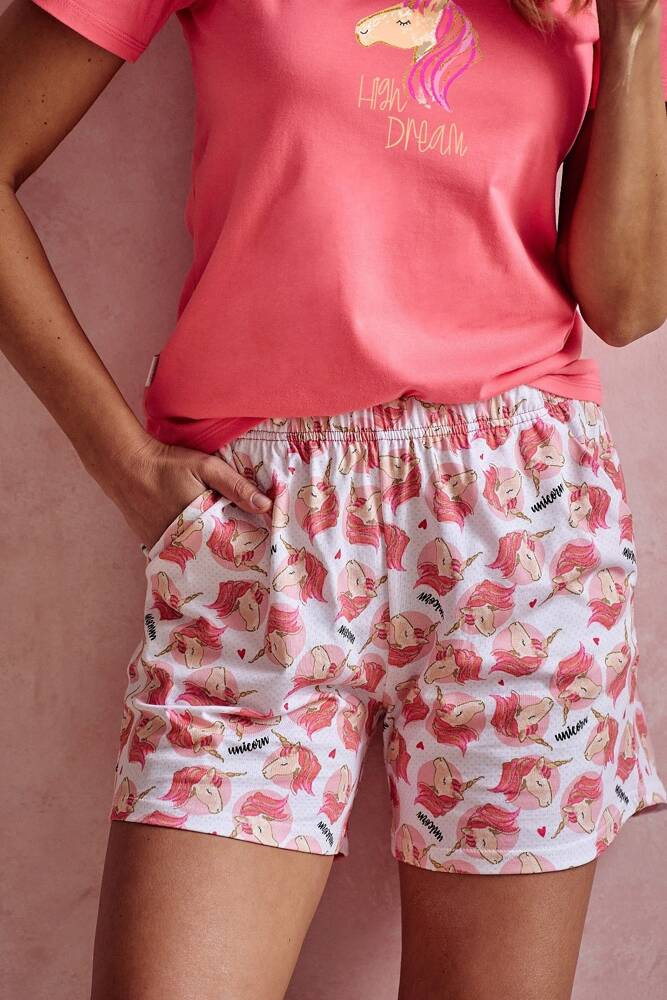 Piżama damska uszyta z wysokiej jakości bawełny.  Koszulka z krótkim rękawem oraz ozdobnym nadrukiem