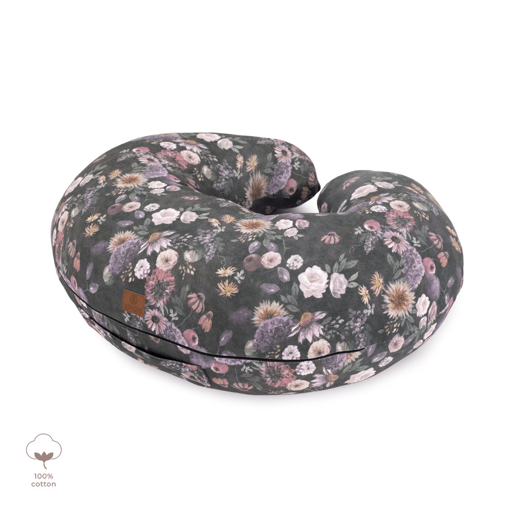 Rogal wykonany jest obustronnie z najwyższej jakości dzianiny bawełnianej, która nie spiera się i nie traci swoich właściwości nawet po wielokrotnym praniu. Poszewka zapinana na bezpieczny suwak jest łatwa do zdjęcia z poduchy i wyprania. W środku bawełniany rogal wypełniony antyalergicznym puchem silikonowym zapewniającym miękkość, a także sprężystość. Wewnętrzna część zapinana jest na niewielki suwaczek dający możliwość regulacji ilości wypełnienia. Dzięki temu poducha idealnie dopasowuje się kształtem i rozmiarem do maluszka i osoby karmiącej.