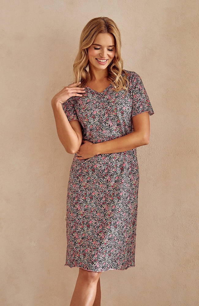 3094 Amara Koszula nocna Taro-czarny kwiaty