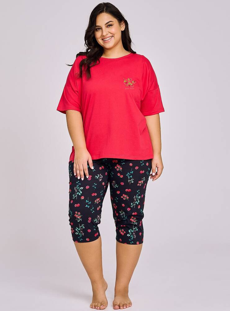 Piżama damska uszyta z wysokiej jakości bawełny . Koszulka z krótkim rękawem, dekolt półokrągły