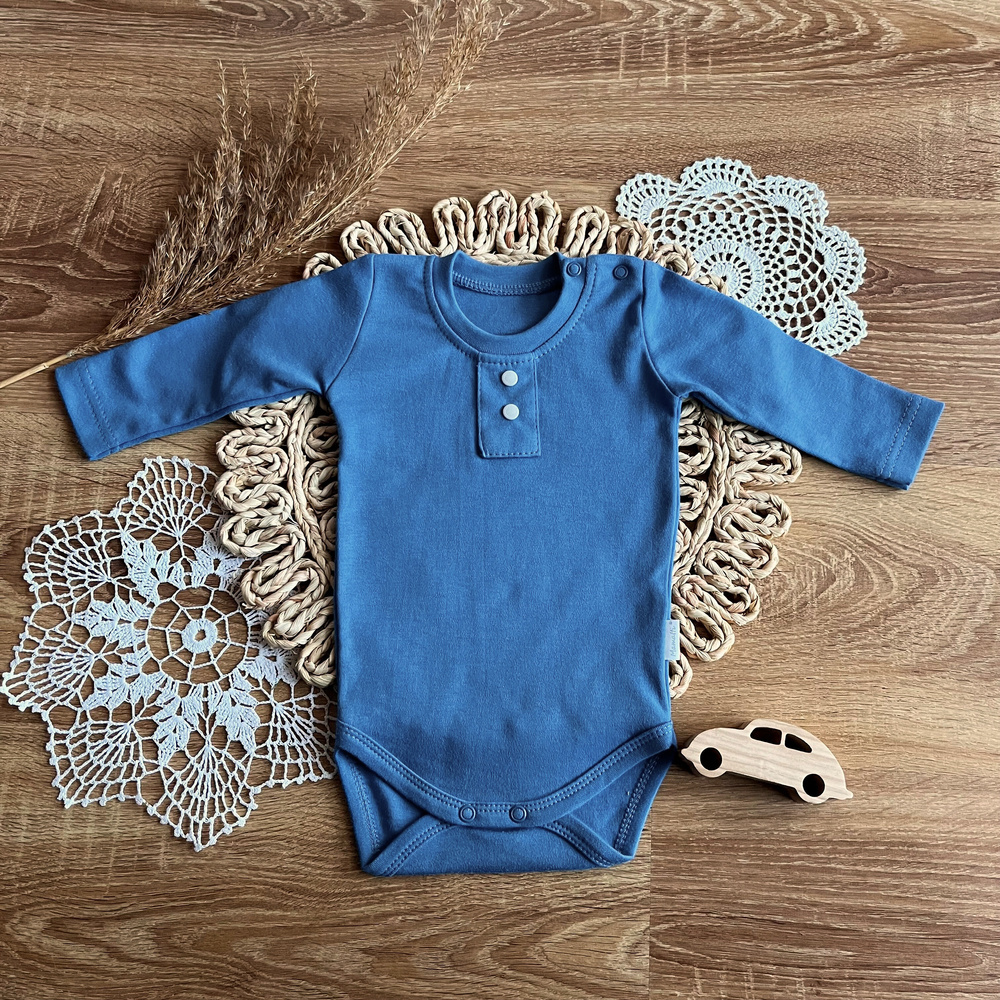 Body z długim rękawem. Uszyte z miękkiej i przyjemnej w dotyku dzianiny bawełnianej.