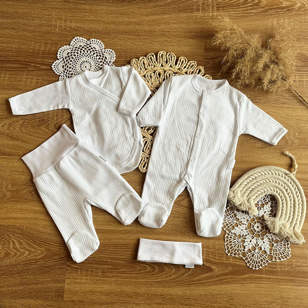 Zestaw wyprawkowy: body, półśpiochy, pajac, opaska. Ubranka z 100% bawełny z certyfikatem Bezpieczne dla Dziecka oraz Tekstylia Godne Zaufania. Wyprawka, której nie może zabraknąć u ciebie w domu!