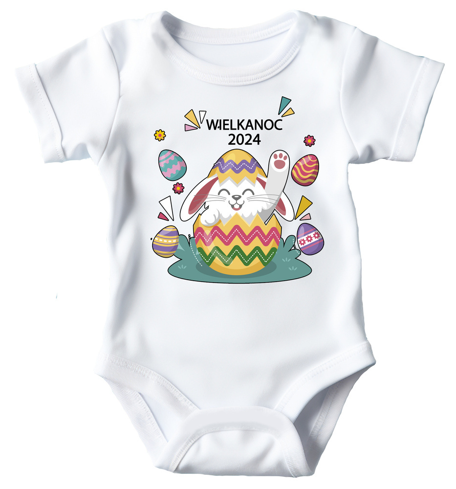 "Wielkanoc 2024 z króliczkiem" Moocha body krótki rękaw biały