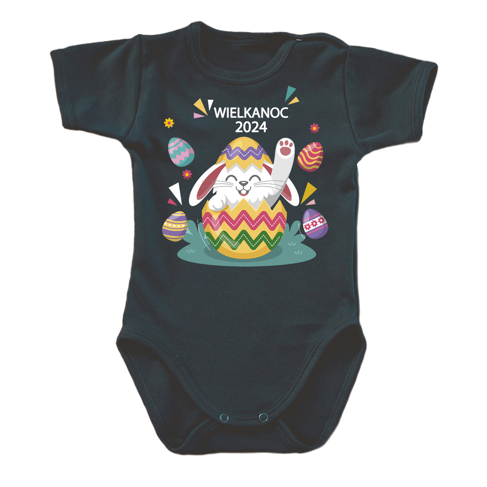 "Wielkanoc 2024 z króliczkiem" Moocha body krótki rękaw czarny