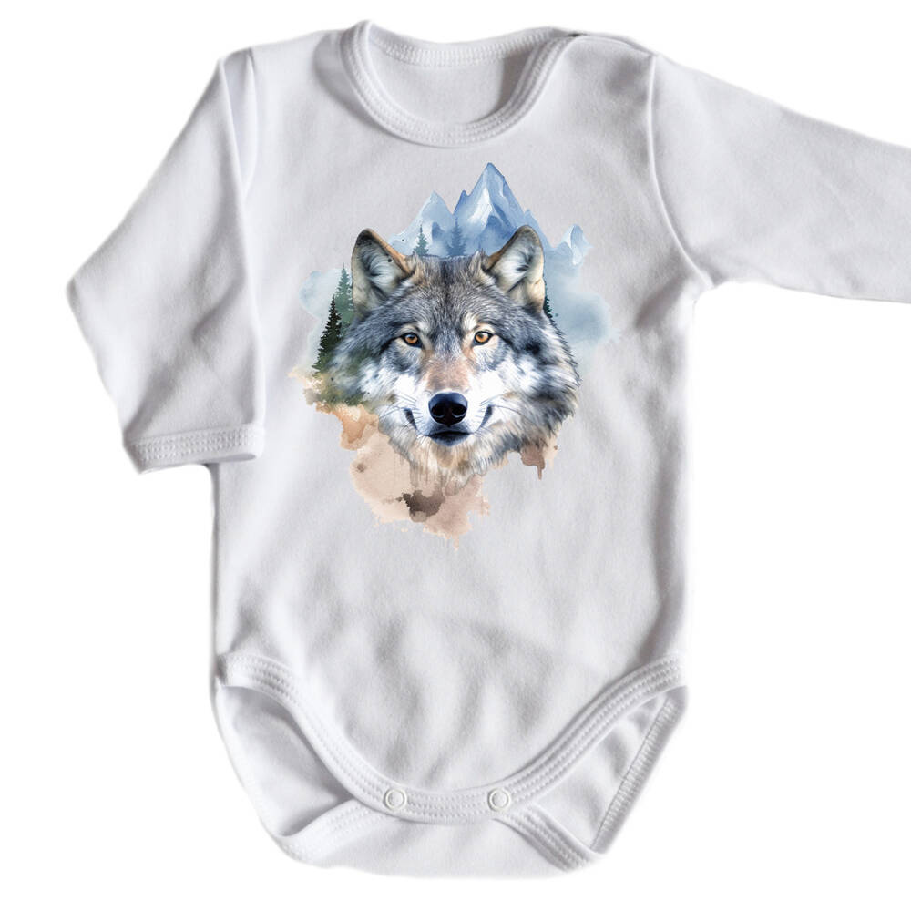 "Wilki" Moocha body długi rękaw biały