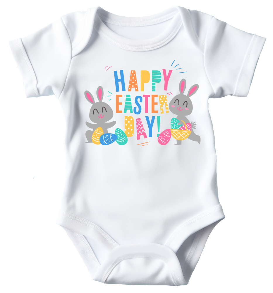"Wielkanoc Happpy Easter 2024" Moocha body krótki rękaw biały