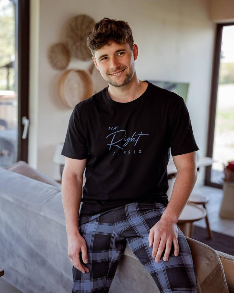 Wygodna i komfortowa piżama męska wykonana z wysokiej jakości bawełny. Koszulka z krótkim rękawem. Do kompletu długie, wzorzyste spodnie. W pasie komfortowa gumka. Model z kieszeniami.