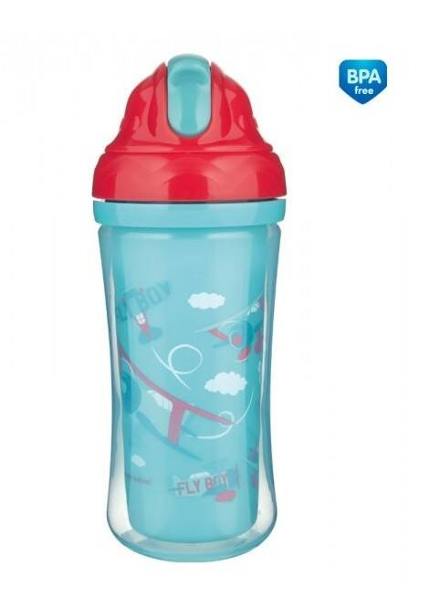 Bidon ze składaną silikonową rurką przeznaczony jest dla dzieci powyżej 1-go roku życia, które opanowały umiejętność samodzielnego picia. Sprawdza się w podróży i na spacerze. Wyprofilowany kształt ułatwia utrzymanie bidonu w małych dziecięcych rączkach. Ruchoma część nakrętki pozwala schować rurkę, kiedy dziecko nie pije z kubka.