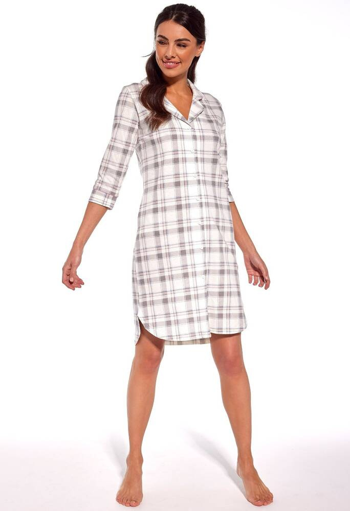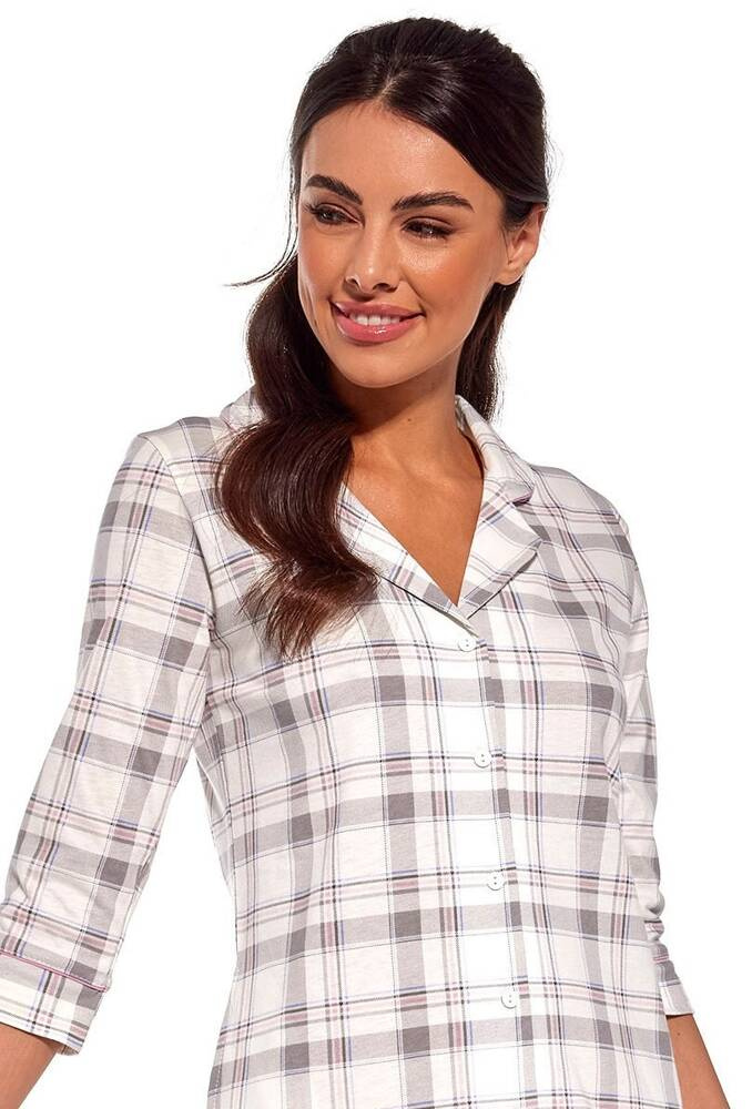 Koszula nocna z rękawem 3/4 uszyta z wysokiej jakości, wzorzystej bawełny. Zapinana na guziki dzięki czemu idealnie nadaje się dla mam karmiących