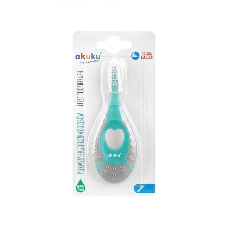 Szczoteczka do mycia pierwszych ząbków malucha oraz masażu dziąseł. Wykonana z miękkiego i bezpiecznego silikonu. Wypustki pozwalają dokładnie wymasować delikatne dziąsła. Konstrukcja szczoteczki umożliwia dotarcie do trudno dostępnych miejsc i usunąć resztki pokarmu. W komplecie z etui do higienicznego przechowywania szczoteczki. Powinna być stosowana już u najmłodszych dzieci, nawet tych, które nie mają jeszcze ząbków, aby uczyć je nawyku dbania o higienę jamy ustnej. Szczoteczka pozwala rodzicom bezpiecznie czyścić wrażliwe dziąsła/ząbki niemowlaka, bez obawy ich uszkodzenia, co może nastąpić przy stosowaniu szczoteczek tradycyjnych.