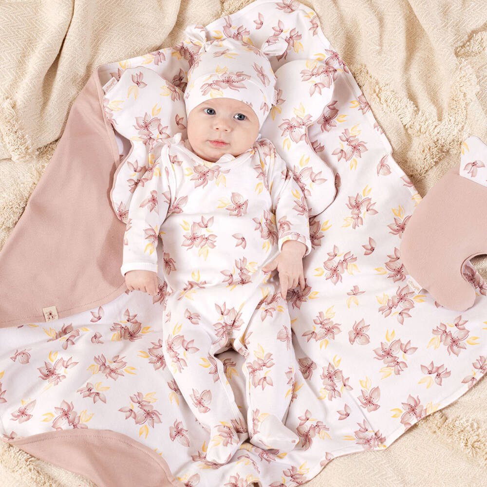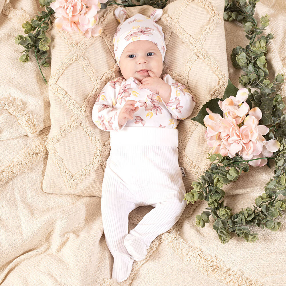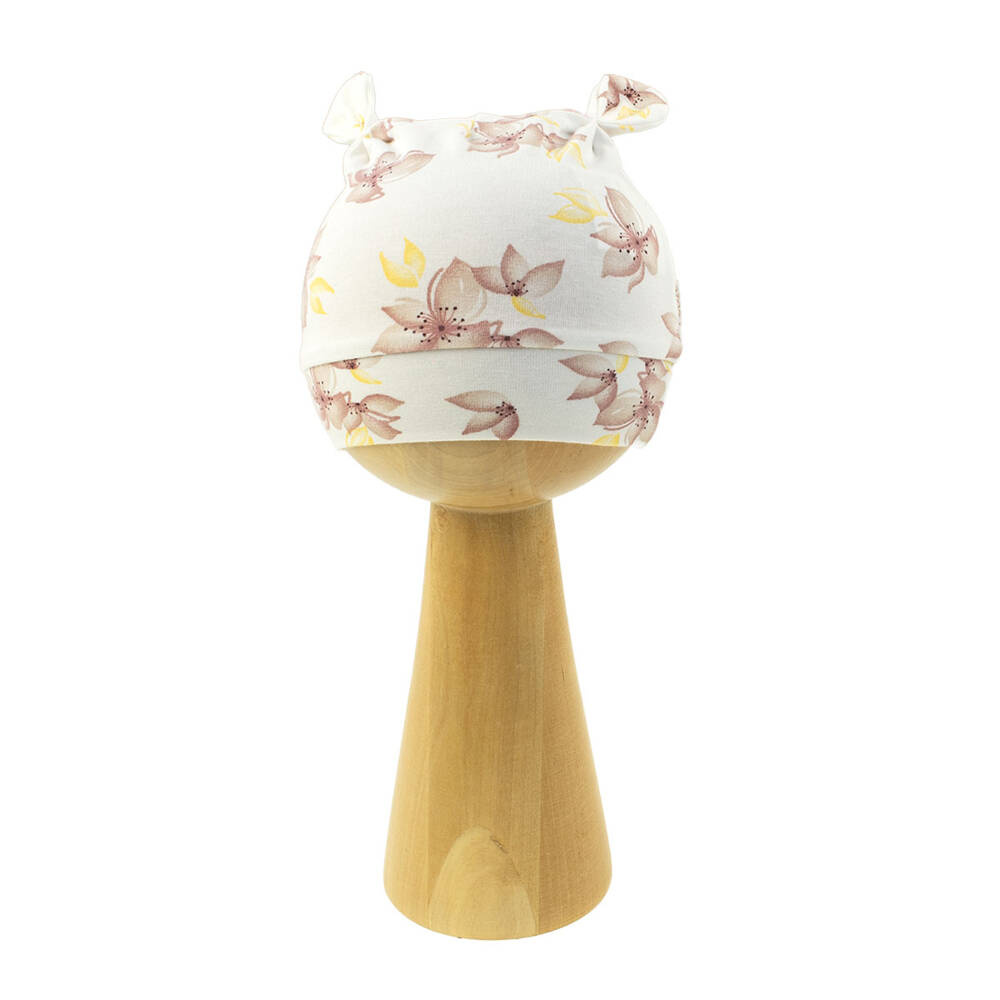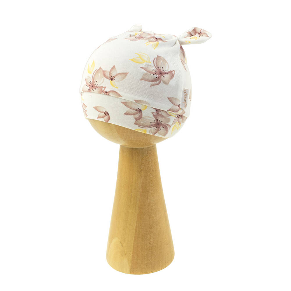 Praktyczna czapka uszyta z drukowanej bawełny. Niewielka ilość elastanu sprawia, że czapeczka będzie lepiej przylegać do główki. W fasonie tym, zastosowano bezuciskowy ściągacz. Czapeczkę zdobią uszka w formie zakładek. Materiał posiada certyfikat Oeko-Tex Standard 100 Tekstylia godne zaufania.