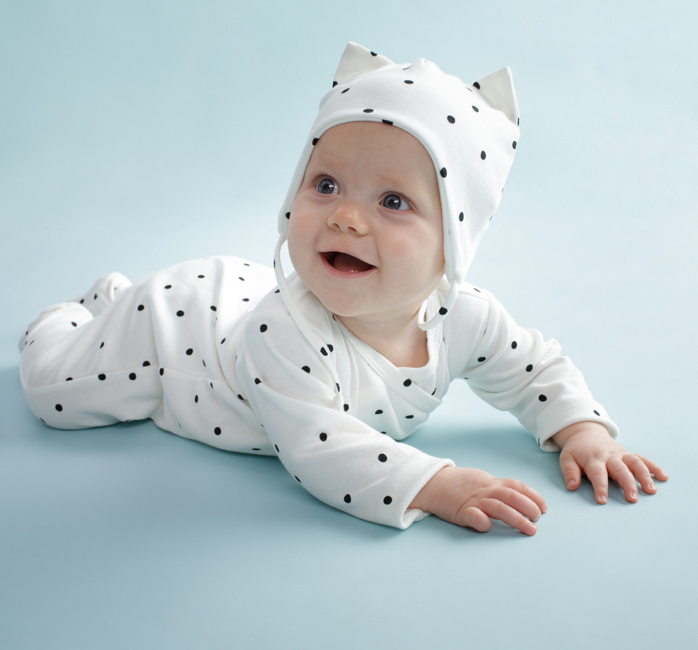 Bawełniana czapka wiązana dobrze przylega do główki, dzięki czemu zapewnia maluchowi ochronę uszu przed chłodem.