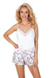 Wyjątkowo kobieca koszulka z delikatnej satyny. Cienkie regulowane ramiączka. Wykonana z jedwabistej drukowanej satyny w kwiatowy wzór. Dół koszulki rozkloszowany, zwieńczony romantyczną falbanką. zapakowana w eleganckie pudełko.