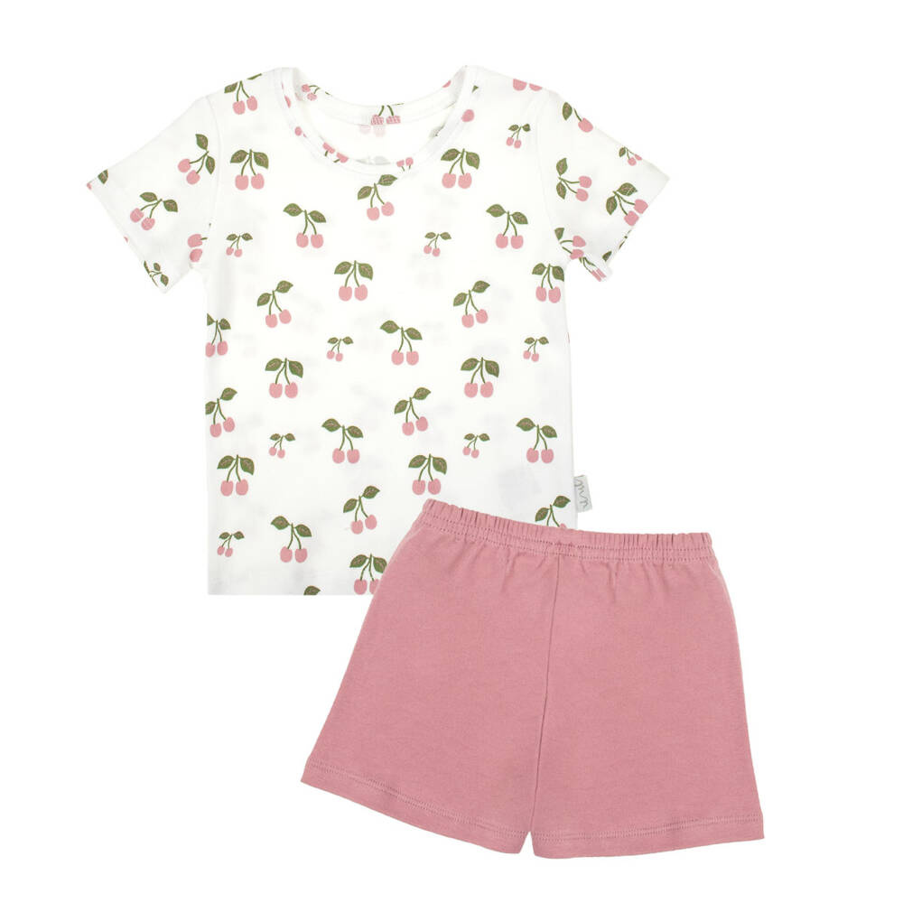 Wygodna piżamka składająca się z bluzeczki oraz spodenek. Bluzeczka wzorzysta. Spodenki wyposażone są w delikatną gumkę, która sprawia, że ubranko pozostaje na swoim miejscu. Piżamka sprawdzi się w czasie snu nieco większych maluchów.