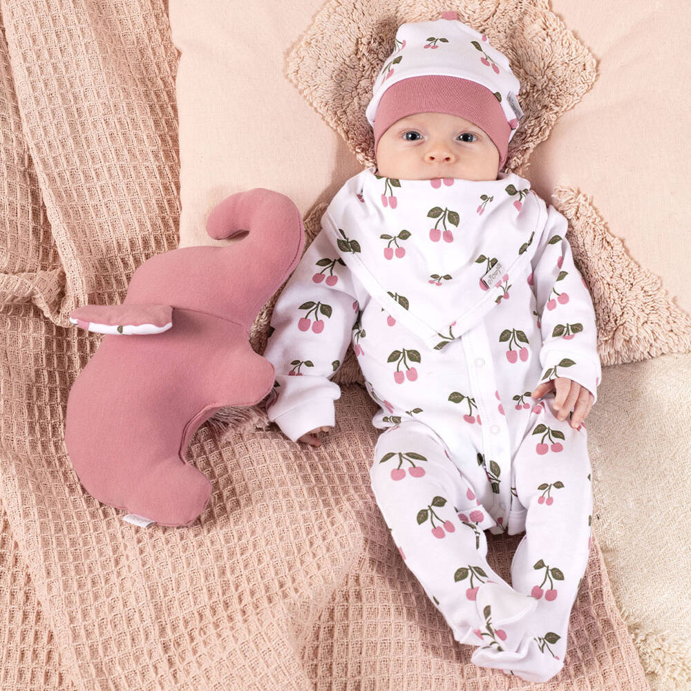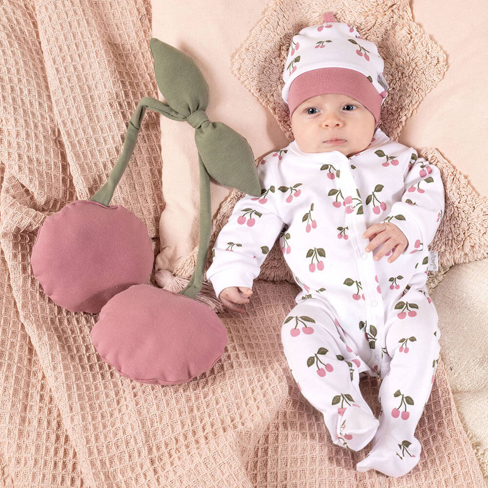 Praktyczna czapka uszyta z drukowanej bawełny. Niewielka ilość elastanu sprawia, że czapeczka będzie lepiej przylegać do główki. W fasonie tym, zastosowano bezuciskowy ściągacz. Czapeczkę zdobią uszka w formie zakładek. Materiał posiada certyfikat Oeko-Tex Standard 100 Tekstylia godne zaufania.