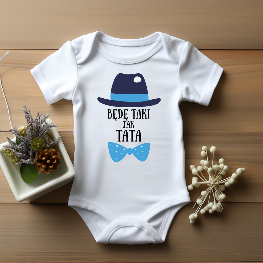 "Będę taki jak tata kapelusz i muszka" Moocha Body krótki rękaw biały