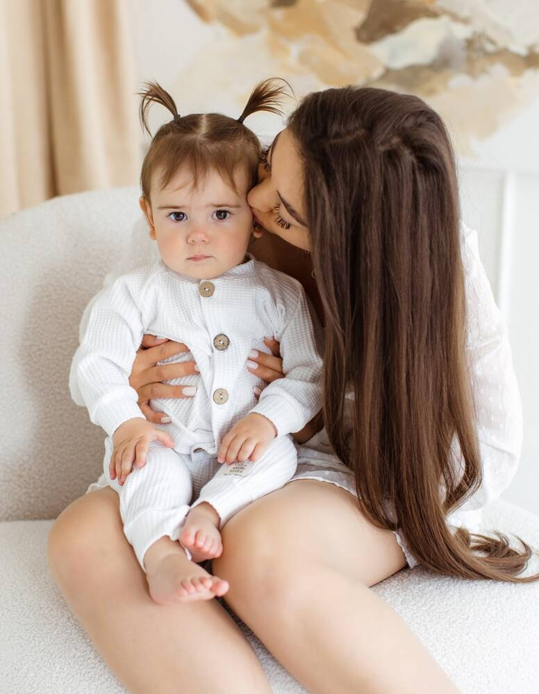 Spodnie wykonane z dresówki. Ozdobione guzikami lub sznureczkiem. W pasie wszyta jest nieuciskająca gumka, która utrzymuje ubranko na miejscu. Krój zapewnia maluchowi komfort noszenia i nie krępuje ruchów. Warto o nich pamiętać, kompletując wyprawkę dla swojego maluszka.