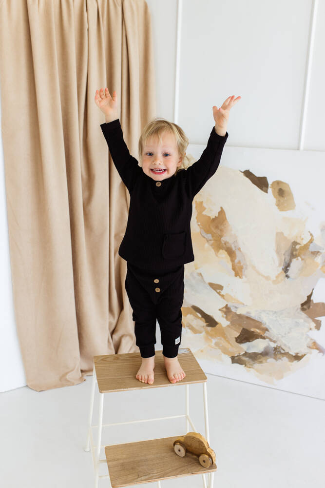 Bluza uszyta z prążkowanego materiału, rozpinana na całej długości. Doskonale sprawdzi się o każdej porze roku. Jesienią i zimą można ją nosić jako dodatkową warstwę pod kurtkę lub kombinezon. Wiosną i latem to świetna alternatywa dla cienkiej kurteczki. Bluzę możesz dowolnie łączyć z innymi ubrankami tworząc wiele ciekawych stylizacji.