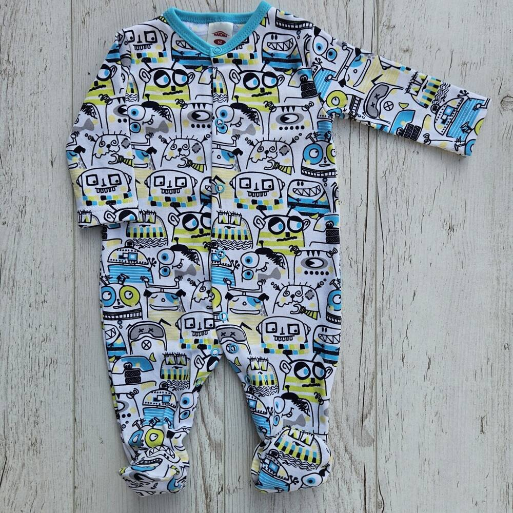 Pajac rozpinany na całej długości, co umożliwia łatwe i szybkie ubieranie dziecka. Zapewnia swobodę użytkowania i nie krępuje ruchów dziecka. Dostępny w rozmiarach 56-74. Uszyty z wysokiej jakości materiały bawełnianego.